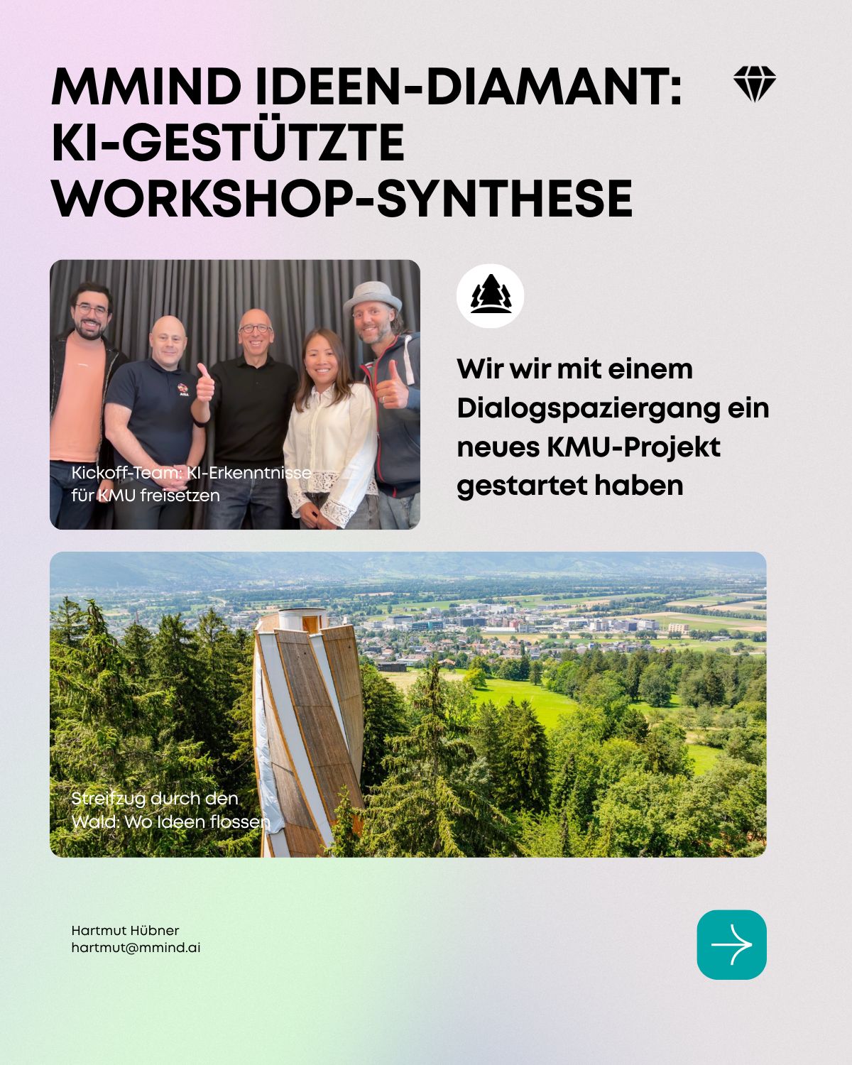 Dieser "Walk & Talk" war übrigens kein Zufall. Er war der Kick-off für eine Initiative, die wir mit MMIND.ai und Partnern wie dockyard in Liechtenstein starten, unterstützt durch Erasmus+. Unser Ziel ist es, KMU mit genau solchen konkreten, niedrigschwelligen Formaten auf ihrem Weg zu begleiten.